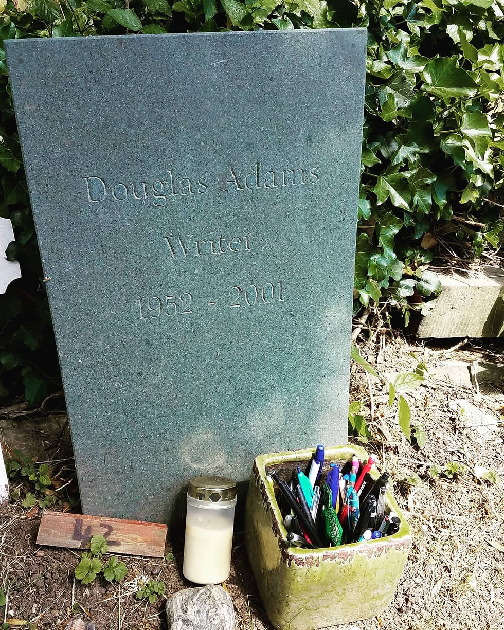 Also, when I was in London, I stumbled across Douglas Adam's grave almost by accident, so enjoy a cool and appropriately adorned graveyard picture:
